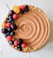 Celebration cakes are usually fairly minimalist in style and decorated mainly with fresh fruit and/or fresh flowers/foliage (or high quality faux).